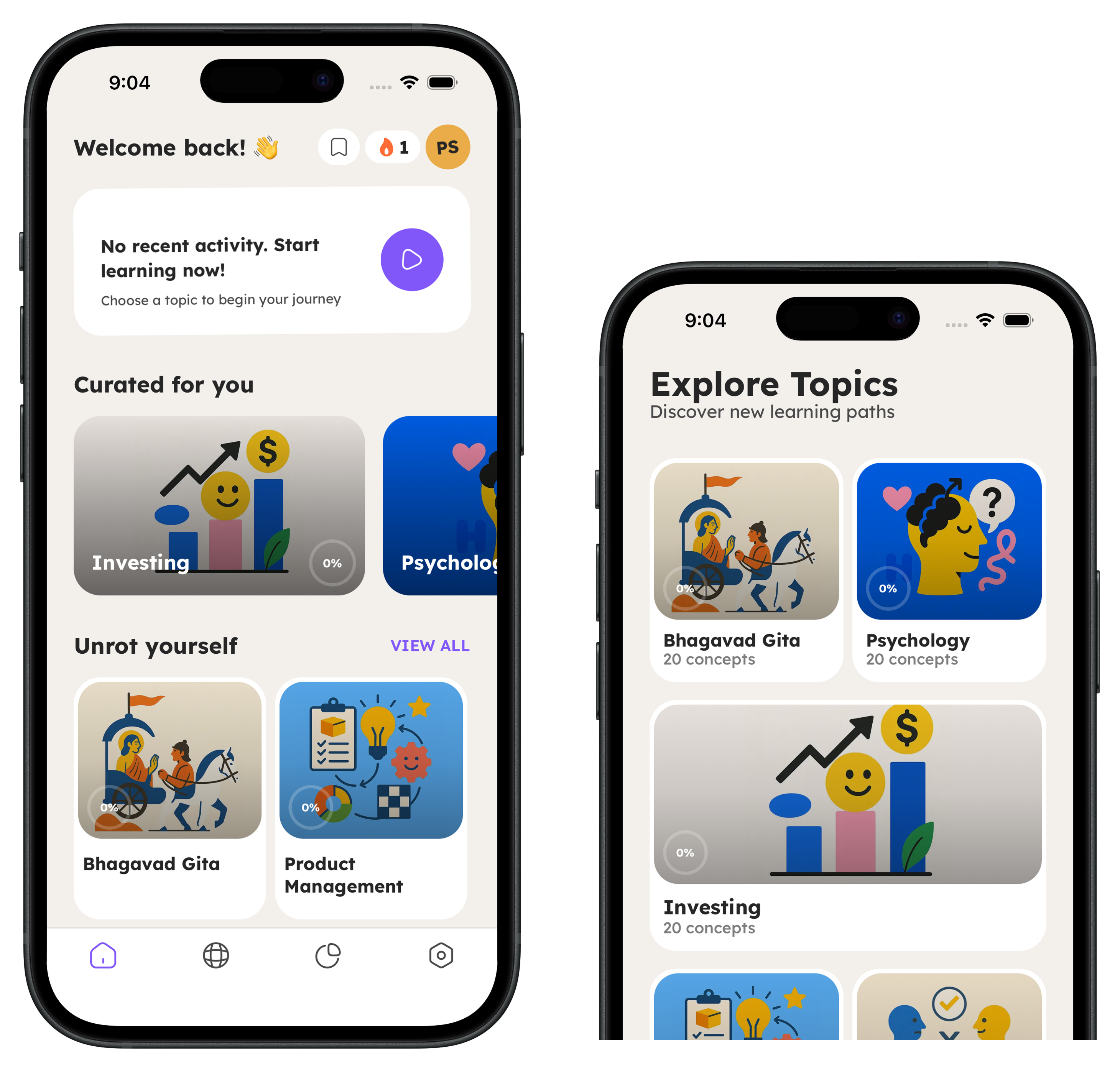 unrot.co is a bite-sized learning app designed for busy professionals who want to learn new skills without the overwhelm. It's perfect for anyone looking to replace mindless scrolling with meaningful daily lessons.